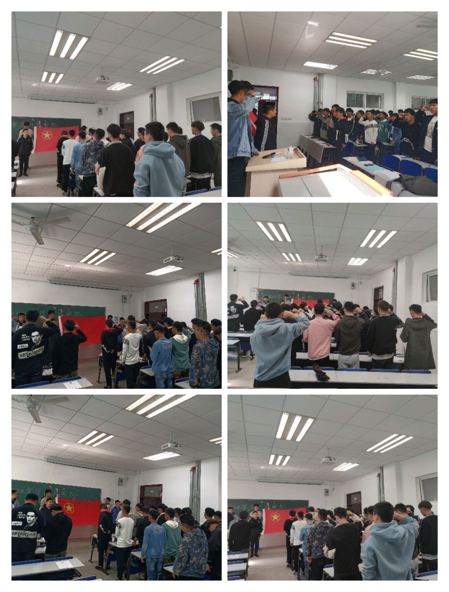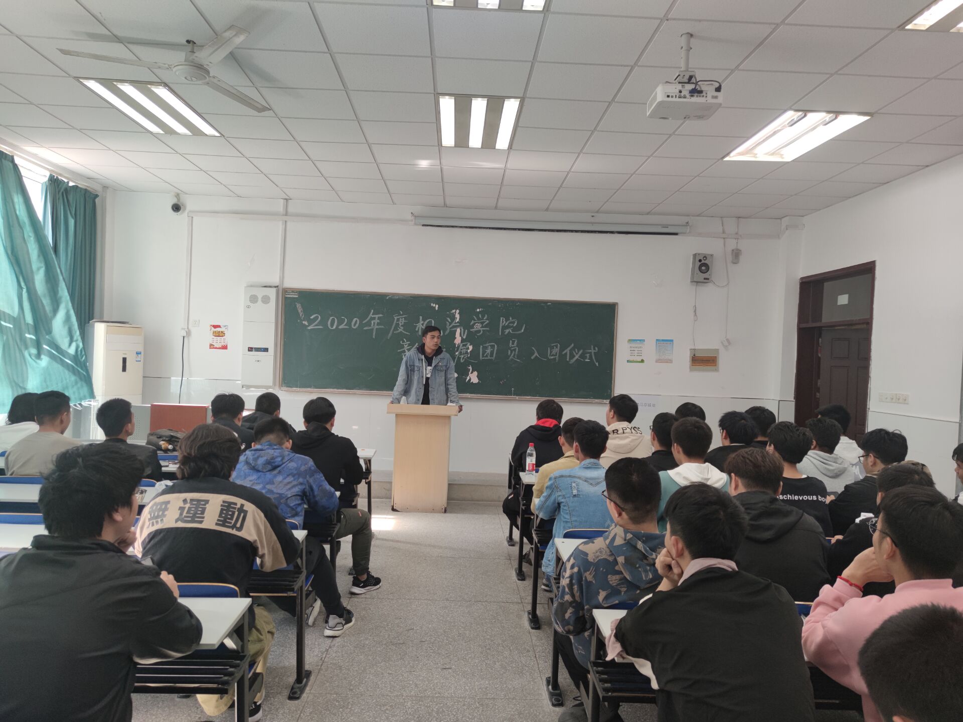 2020年11月12日中午12点整,awc777万象城娱乐官网机械与汽车工程学院团总支在5号楼5113教室开展了新发展团员入团仪式,我院团总支副书记徐晓龙和2019级、2020级各班团支书以及新入团团员准时参加。