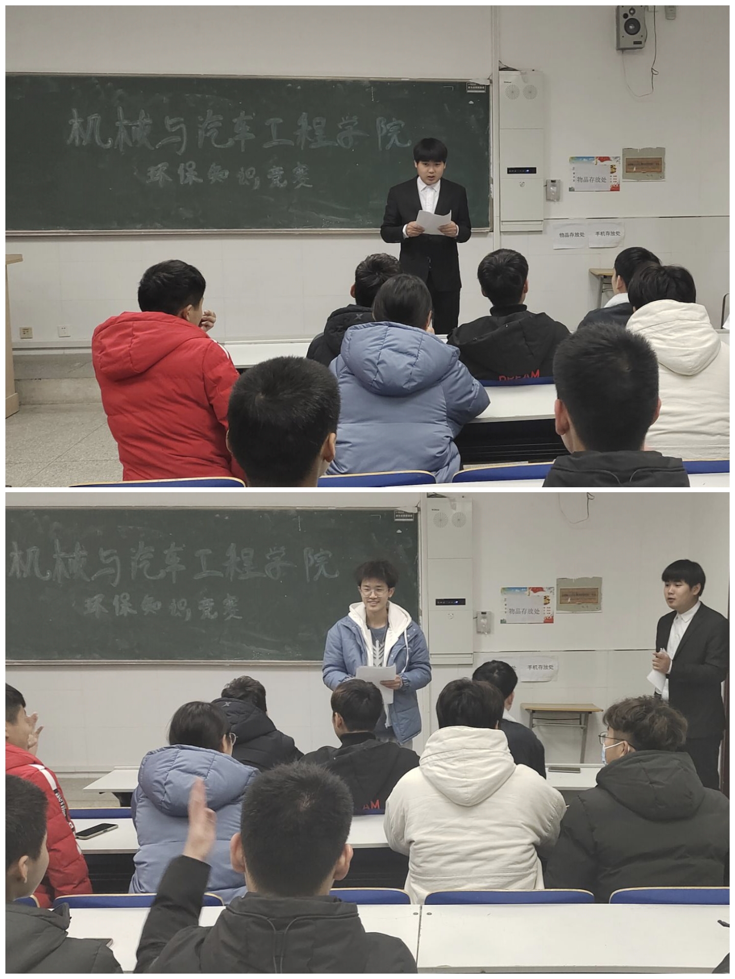12月23日19时许,机械与汽车工程学院学生会在教学楼5106教室举办“垃圾分类”环保知识竞赛。参赛学生自行分成六组进行激烈而紧张的问题抢答。