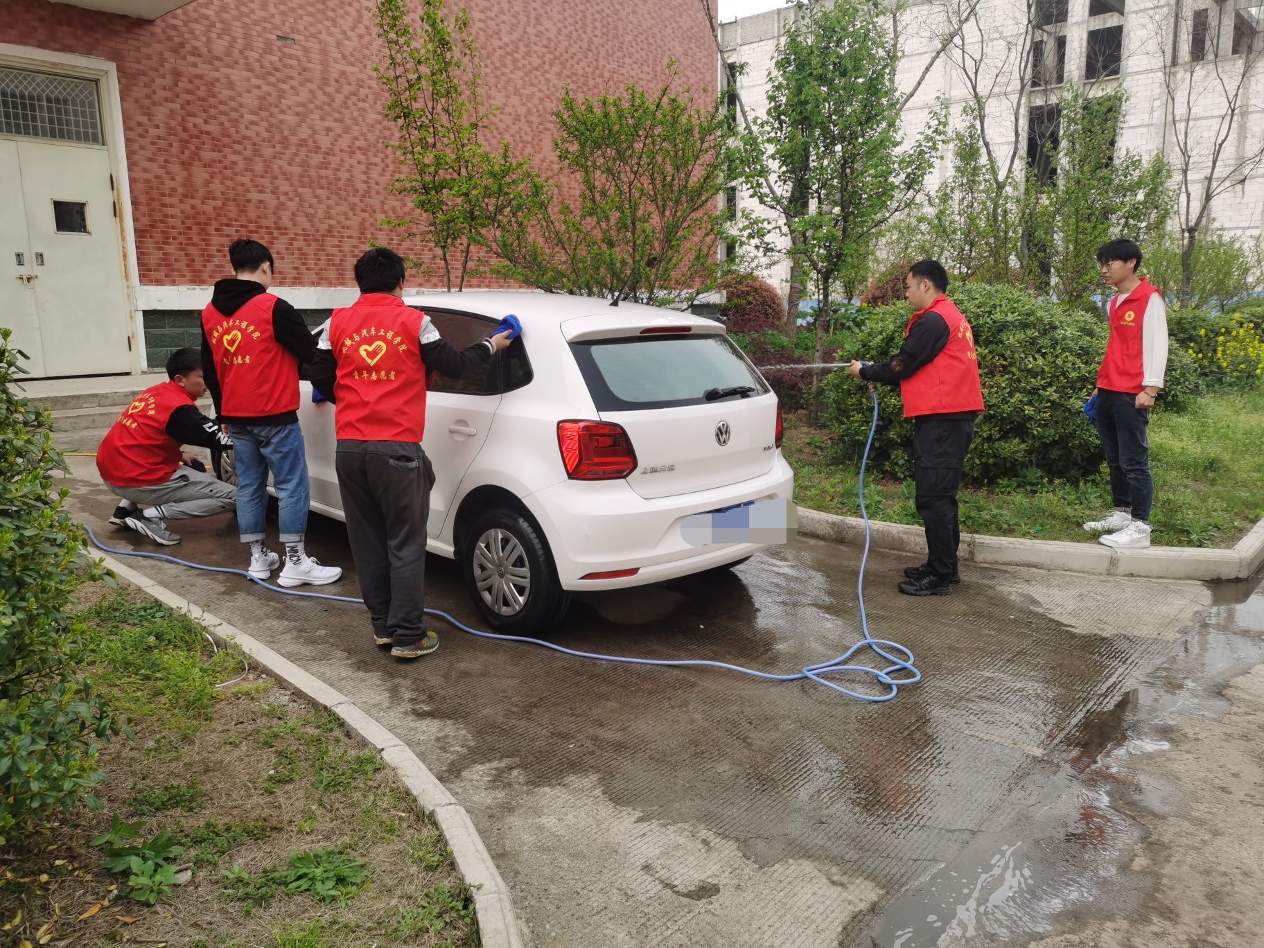 在学生管理党支部书记吴佳佳老师的指导下,我院志愿者们为学校老师们提供清洗汽车的服务。活动中,志愿者们穿上红色的马甲,舞动着手中的水枪,挥洒着勤劳的汗水,共同协作完成冲洗、上沫、擦车等工作。整个洗车过程有序进行,使原本沾满灰尘的车变得焕然一新,赢得了老师们的一致好评。活动后,志愿者们真切的感受到雷锋精神的光芒,并感受到了做一颗永不生锈的“螺丝钉”的荣誉感。