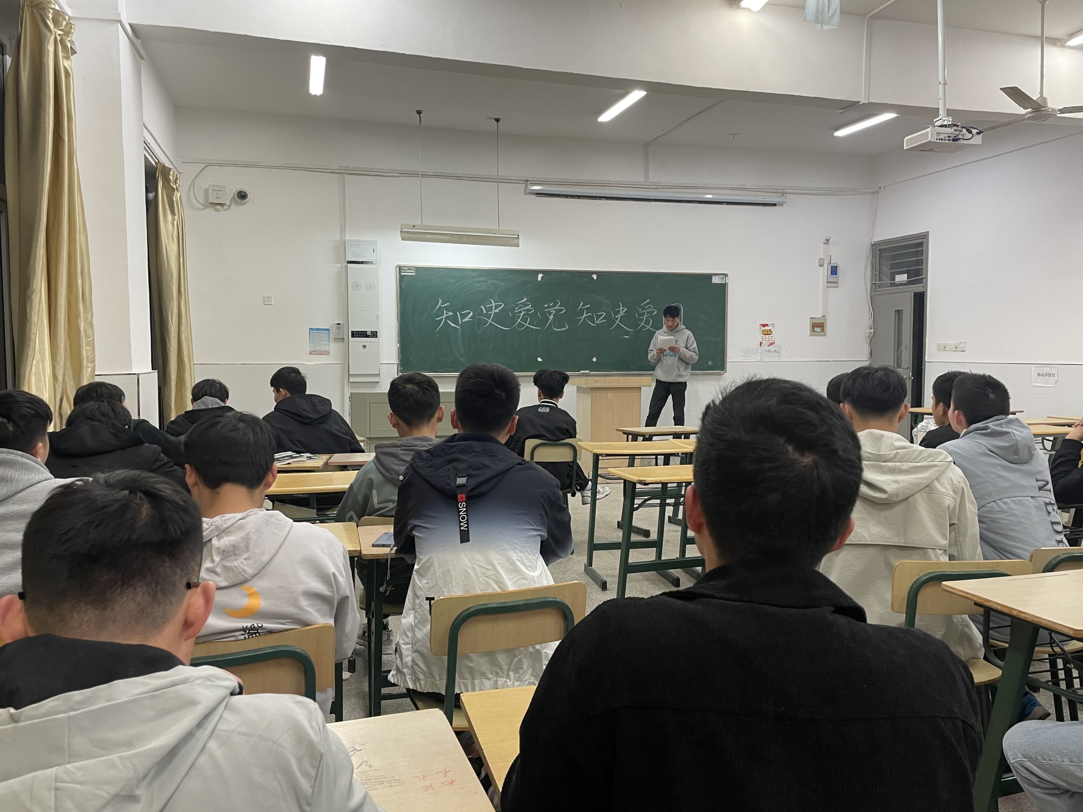 为庆祝中国共产党建党100周年,深入推进党史学习教育,机械与汽车工程学院20汽检3班于2021年4月9日19时,在5207 教室开展“知史爱党,知史爱国”主题班会。