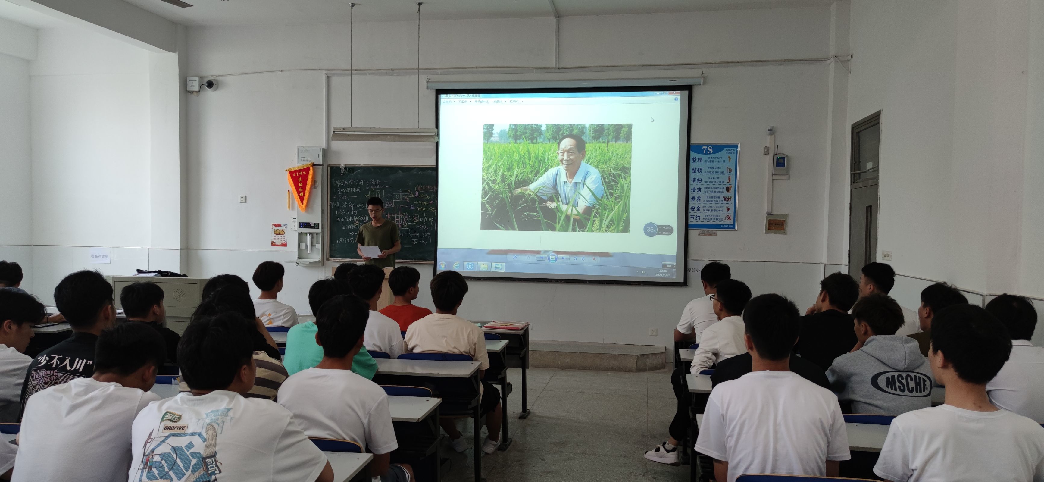2021年5月24日星期一上午10点10分,机械与汽车工程学院20新能源汽车技术2班团支部和20汽检3班团支部在5104教室开展以袁隆平和吴孟超两位院士的悼念活动。