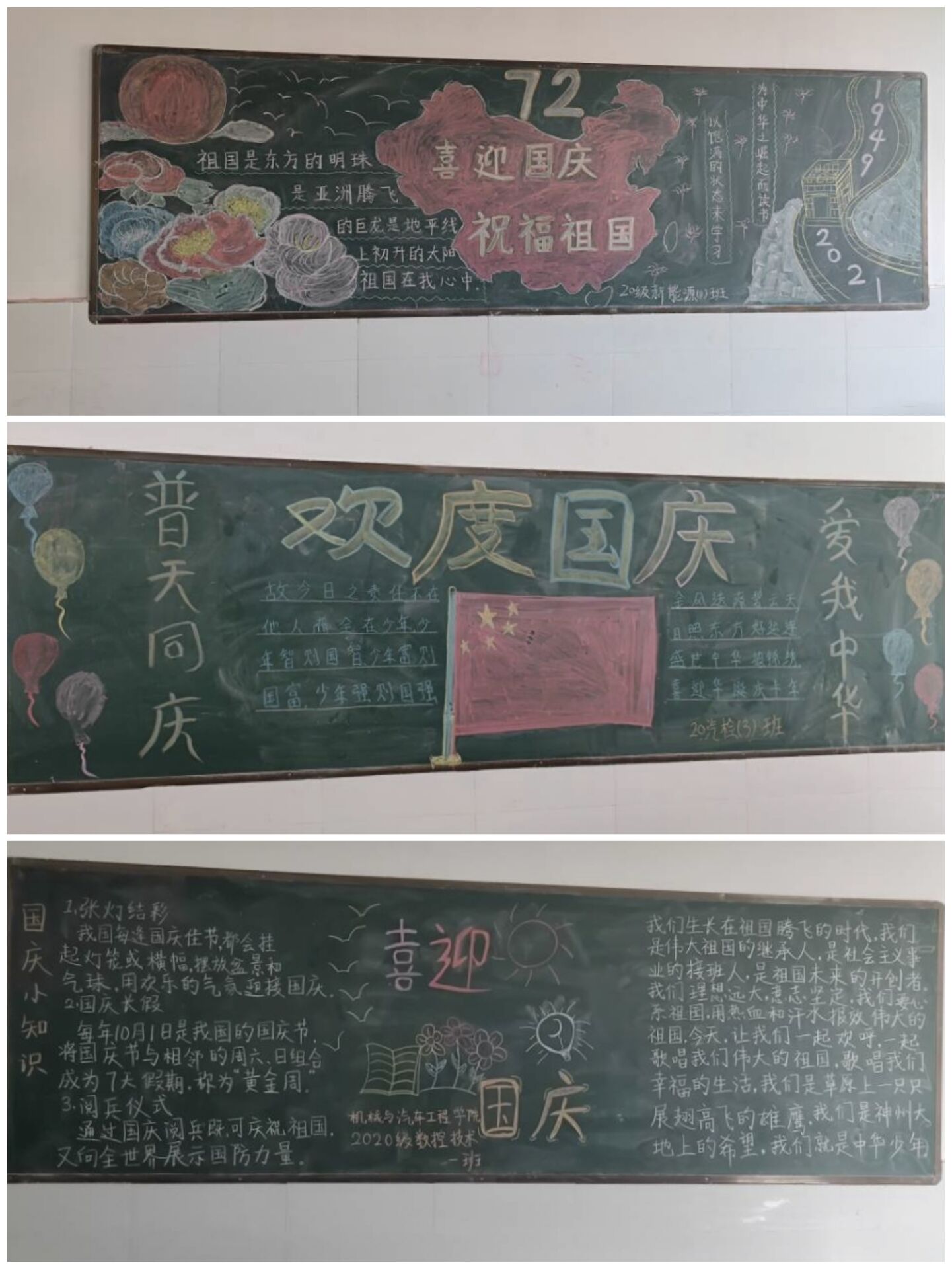 为庆祝新中国成立72周年、建党100周年,2021930日下午,机械与汽车工程学院开展:祝福祖国·喜迎国庆黑板报评选活动。