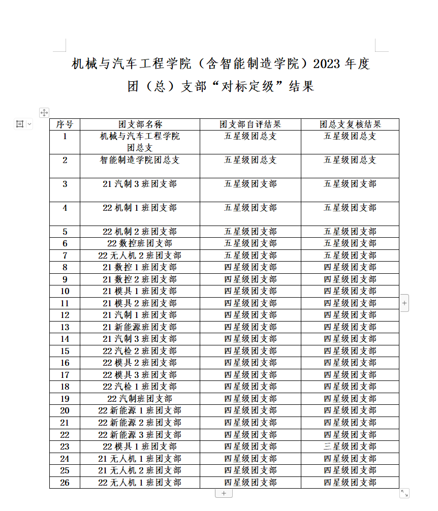 机械与汽车工程学院(含智能制造学院)2023年度 团(总)支部“对标定级”结果
