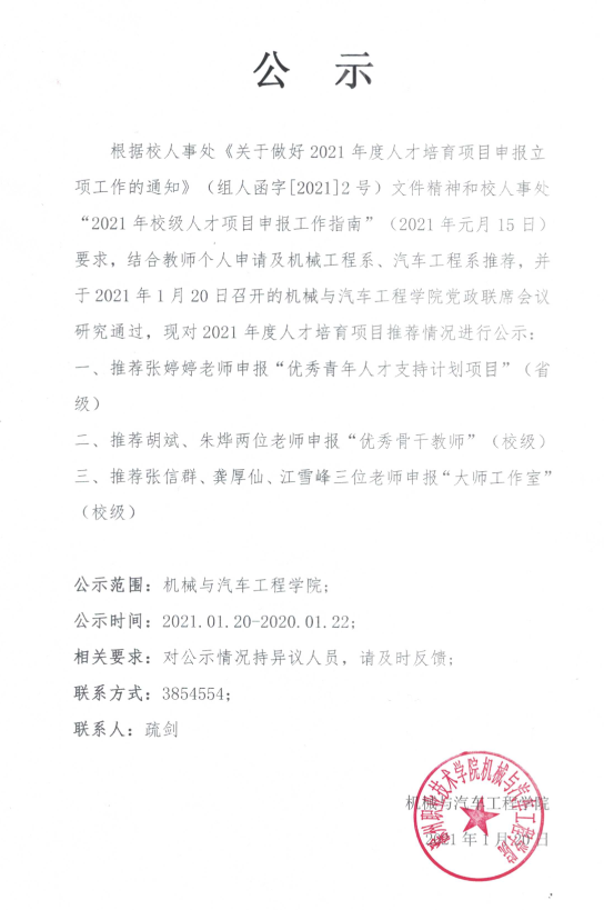 作者:疏剑 发布时间:2021-01-20 信息来源:机械与汽车工程学院 阅读次数: