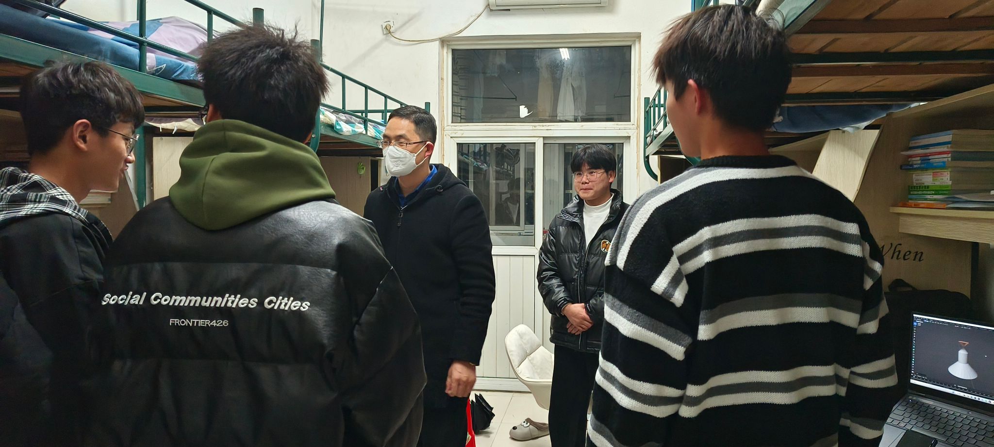 走访期间,两位老师认真查看了各个宿舍的卫生及人员在校情况,向同学们传达了学校关于疫情防控工作的最新政策和要求,询问同学们学习、生活情况和存在的问题,勉励大家珍惜时间,上好网课,及时复习迎接期末考试。