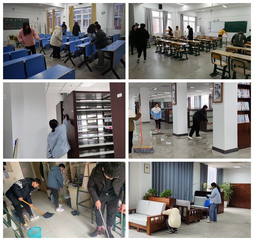 各班级组织开展卫生清扫活动,对教室、寝室及教学楼公共区域进行了彻底的清扫和抹洗,有的班级还主动走进了图书馆开展“学雷锋”志愿服务,积极为全校师生营造干净、整洁的校园环境。