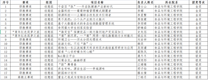 近日,校第九届“互联网+”大学生创新创业大赛落下帷幕,食环学院积极组织师生参赛,成绩喜人。