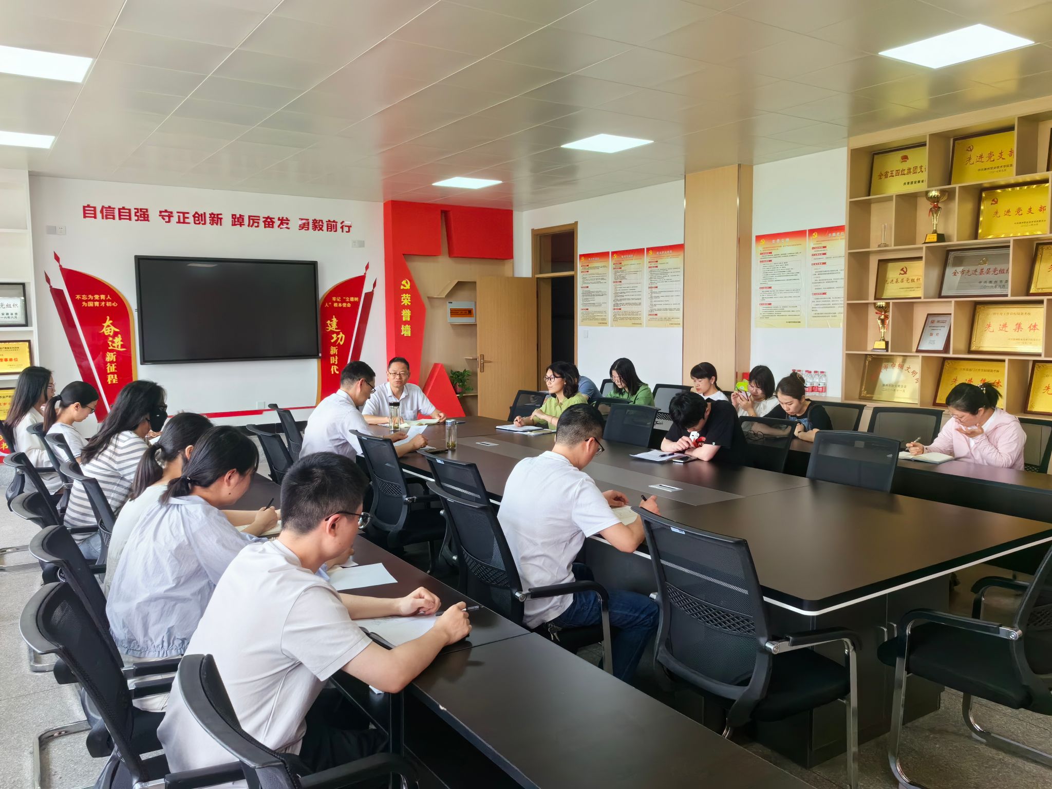 党总支书记张功会要求,各党支部、全体党员要进一步提高认识,增强开展党纪学习教育的自觉性,推动党纪学习教育走深走实;党员干部要在深学细悟上作表率,在真学真用上见实效,做严守纪律的典范;要结合实际学,以学促改、补齐短板弱项,奋力在党纪学习教育中实现学院“双高”建设目标任务。