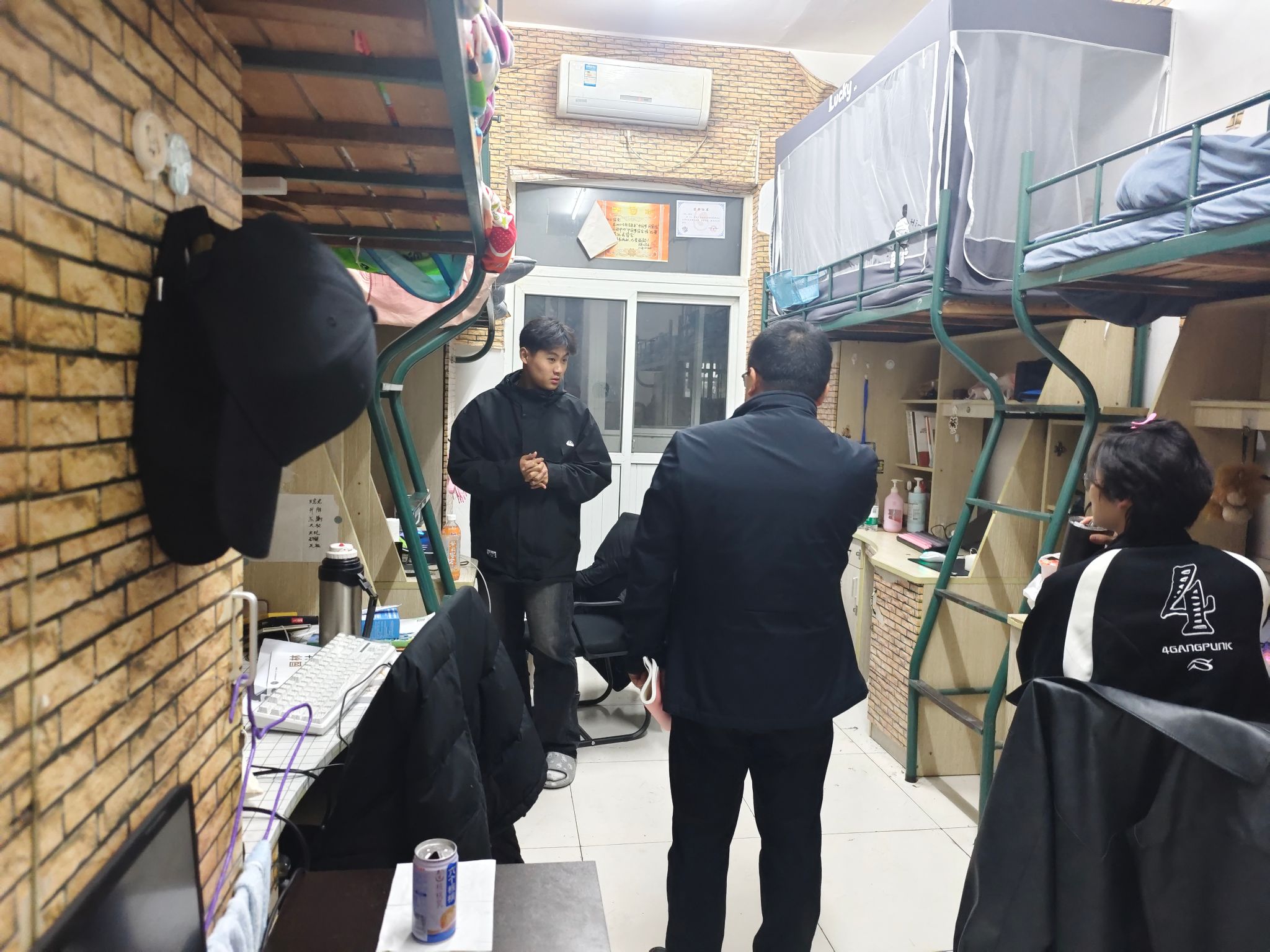 会后,江生泉与学干一同走访了7号楼部分学生宿舍,了解同学们的学习和生活情况,鼓励大家学好知识、积极实践、坚持体育锻炼,做到全面发展。