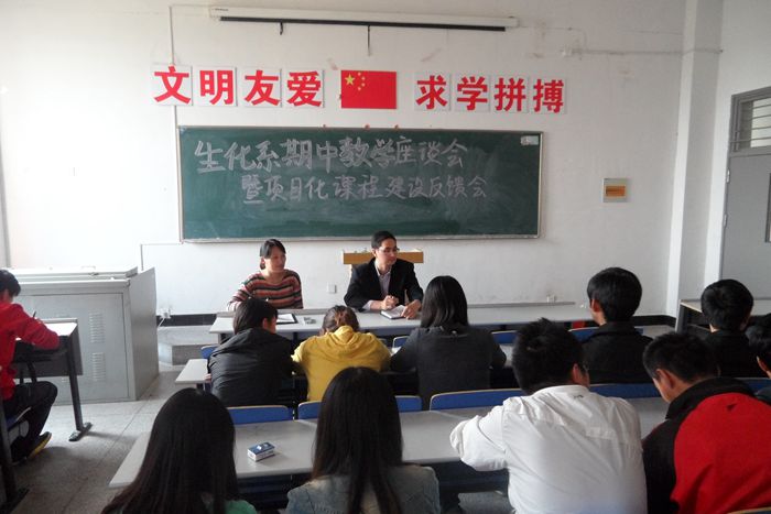 10月23日下午,生化系在2111教室举行期中教学学生座谈会暨项目化课程建设座谈会,会议由系秘书孟飞主持,系团总支书记张功会及来自全系17个班级的100余名学生代表参加座谈。