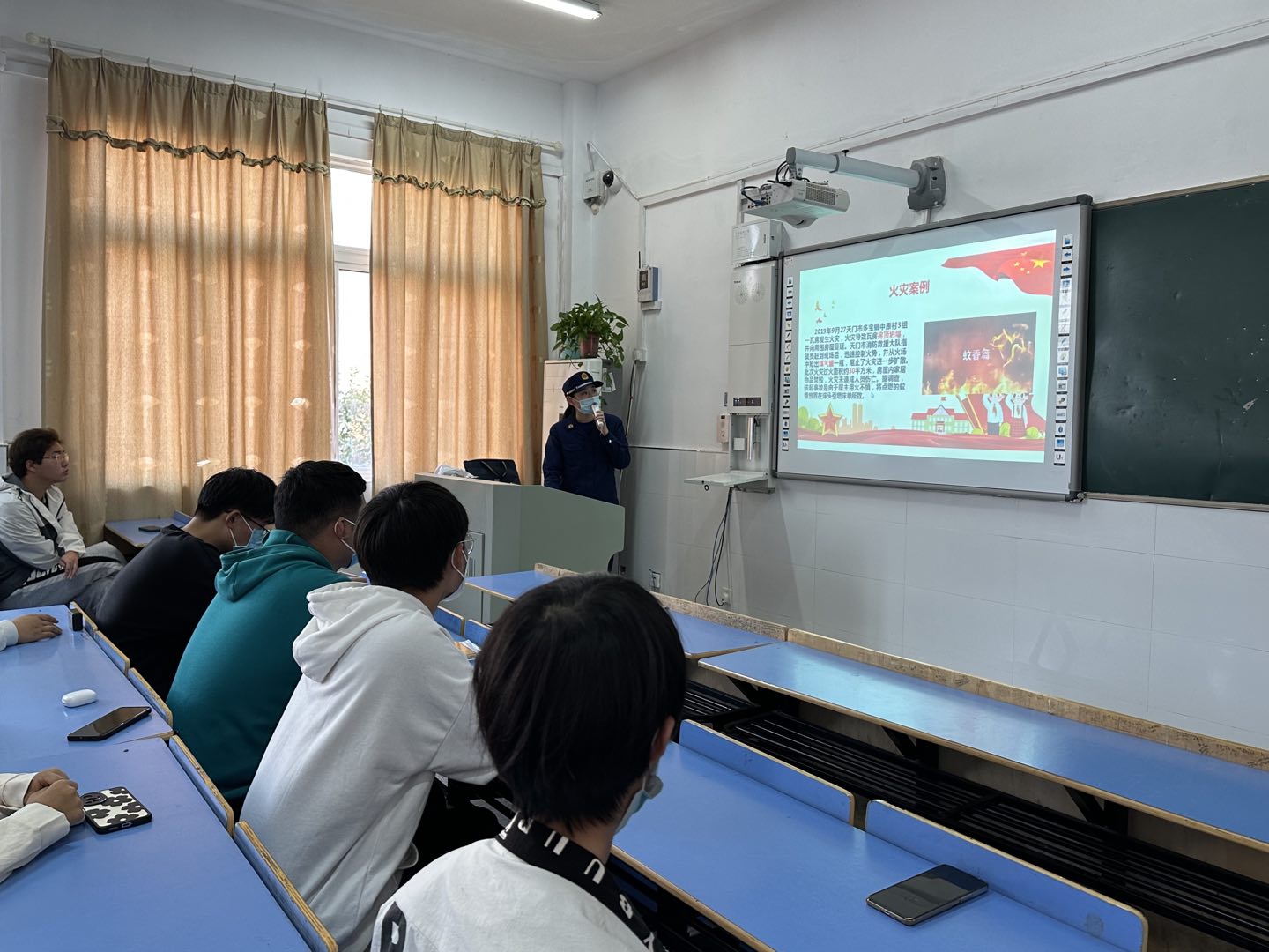 食环学院各班级学生踊跃报名参加此次活动。滁州消防救援支队工作人员对学生进行了消防安全专题教育,重点讲解了“校园防火需要注意什么、宿舍如何安全用电、火灾发生时如何紧急处理”等问题,内容贴合同学们的学习、生活,有很强的针对性和指导性。工作人员还播放了高校学生宿舍因用电不当引发的火灾案例,画面触目惊心,让同学们记忆深刻。最后消防工作人员介绍了几种常用消防器材的使用方法和注意事项。