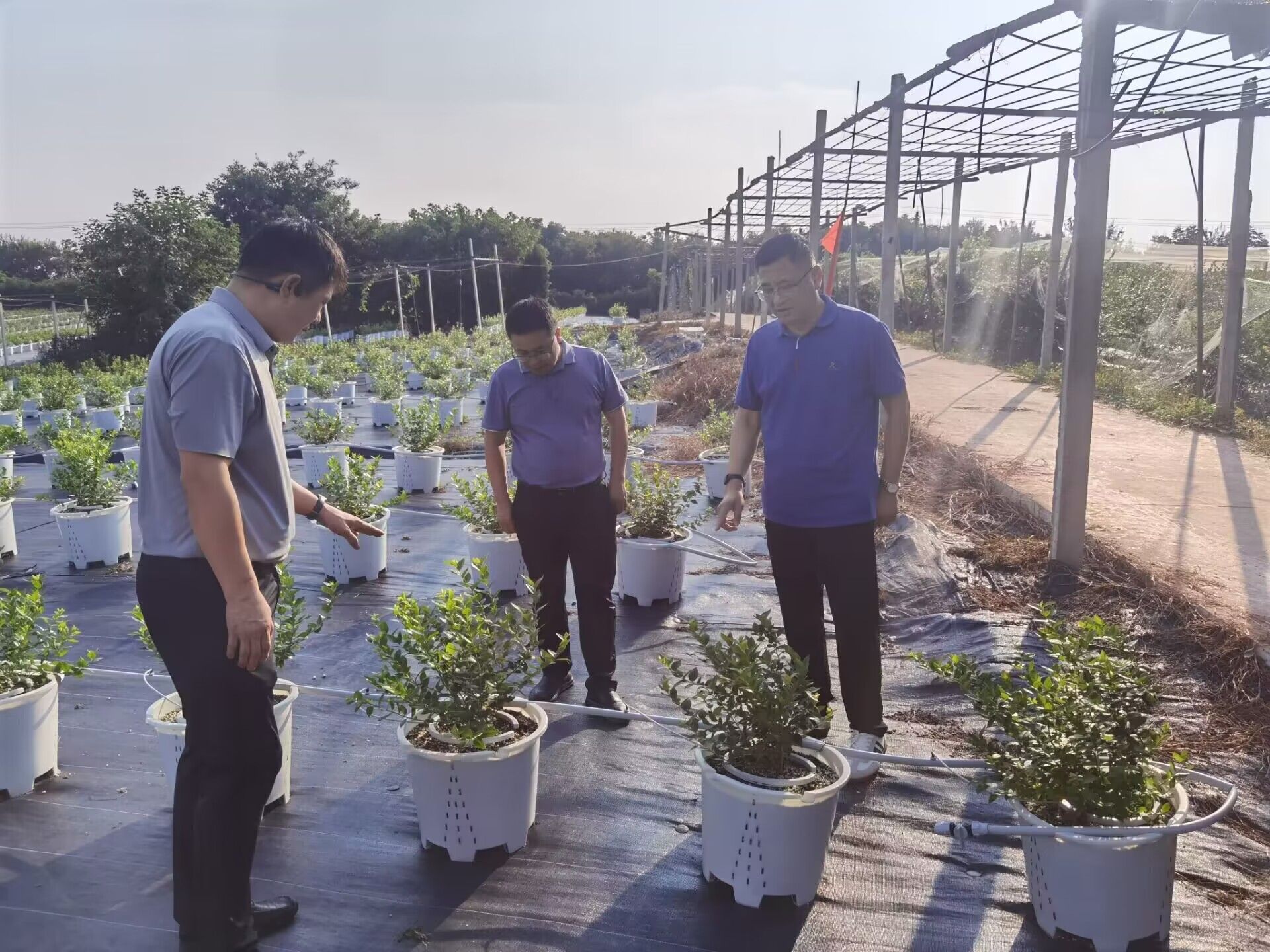 穆松指出,当前国家高度重视乡村振兴工作,园林园艺系要立足当地特色产业,最大化利用高校人才技术与智力,服务乡村产业,尤其是在产教融合、社会实践、创新创业等方面深度合作,可以实现双赢的局面。双方还就校企合作进行交流,初步达成共识。会后一行人参观了蓝莓的无土栽培示范基地。