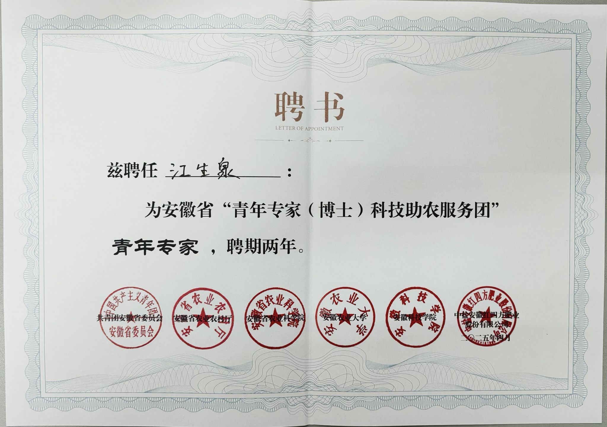 食环学院:教师受聘为“安徽省科技助农服务团”青年专家