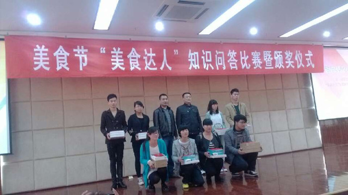 首先进行的是“美食达人”知识问答比赛,然后院团委对美食节举办一周以来所有获奖选手进行颁奖,合影留念,并宣布美食节闭幕。