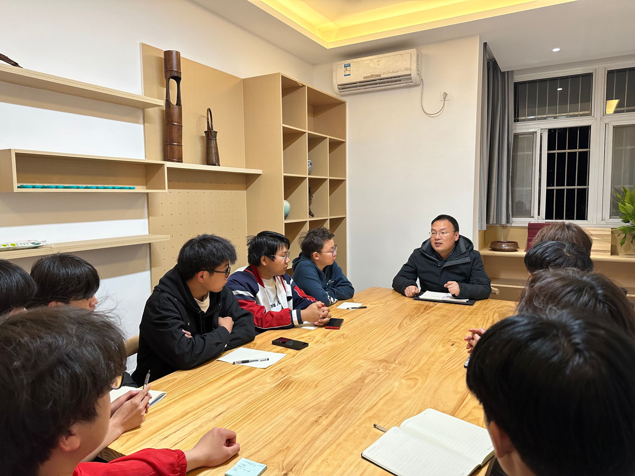 4月7日晚,食环学院实训中心主任巩振虎在“丰乐驿站”开展“学生面对面”活动,23级、24级化工专业学生代表参加。师生围绕技能大赛、专升本及日常学习生活等话题开展交流对话。