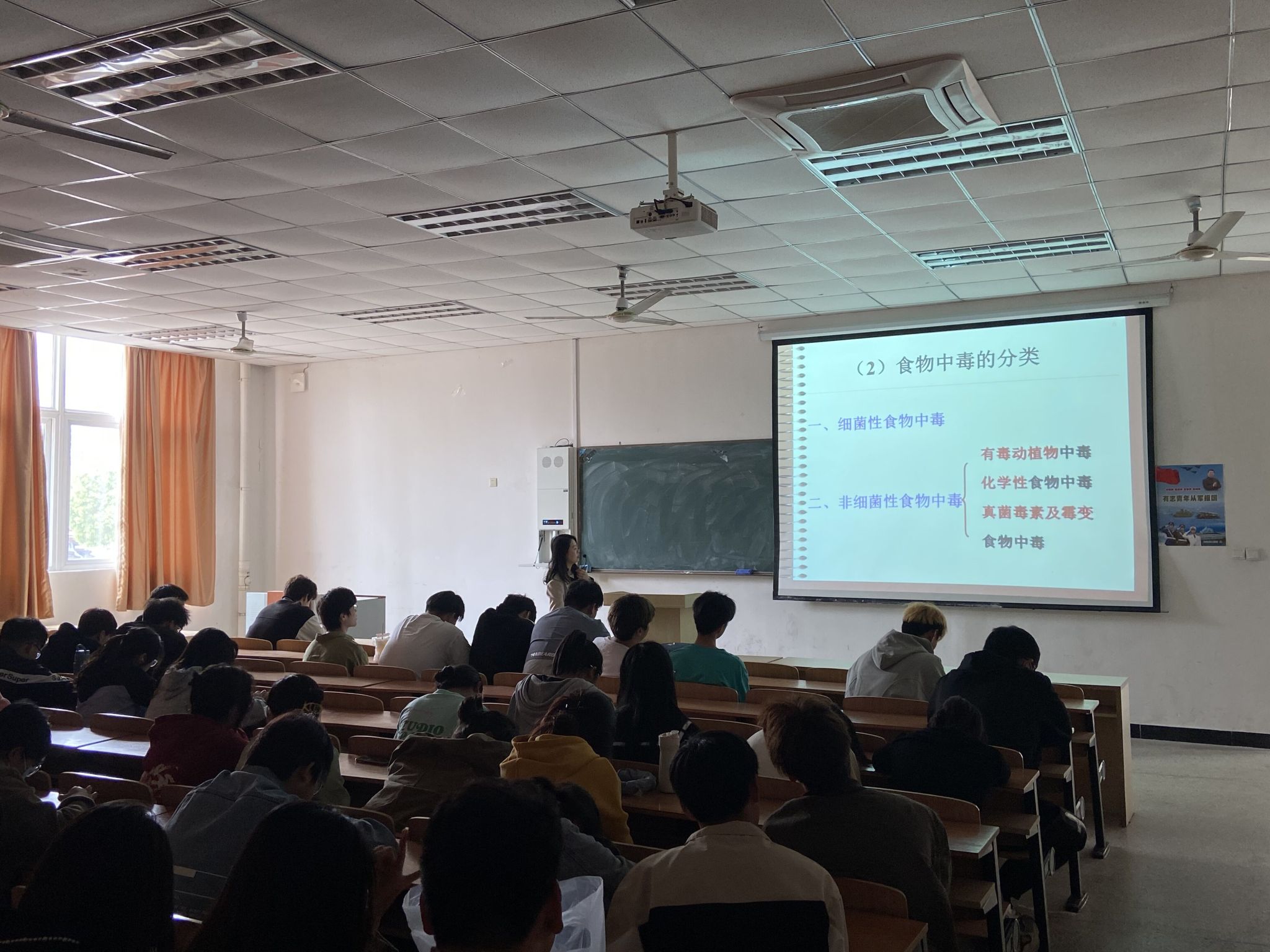 2023年4月13日中午12:00食品与环境工程学院谢小花副教授在南阶105教室开展以“食物中毒的预防”为主题的学术讲座。食品与环境工程学院食品专业的同学们参加了此次讲座。讲座中谢老师通过一个个生动的案例向同学们介绍了食物中毒的概念,食物中毒的种类,引起食物中毒的原因,当季高发的食物中毒种类及如何预防此类食物中毒。
