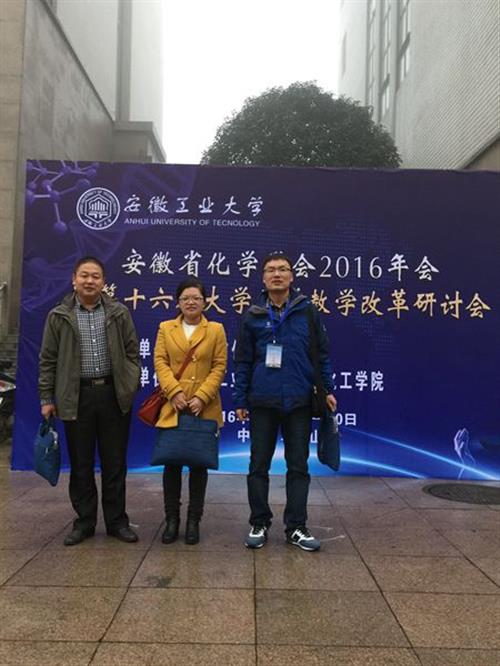 2016年11月18日,食品系教师肖陆飞、汪蓓蓓、巩振虎3人一行赴马鞍山参加安徽省化学会第十六届年会(2016年),本届年会是由安徽省化学会主办、安徽工业大学化学与化工学院承办,来自中国科学技术大学、安徽大学、合肥工业大学等约30所高校的150余名院士、博导、教授和一线教师参加了本次学术年会。