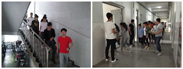 4:20分,警报声准时响起,演练正式开始。各班级迅速停止上课,陆续从教室内撤出,在辅导员和学生会干部的引导下有序通过楼梯向安全地点撤离,在规定时间内到达了指定地点。