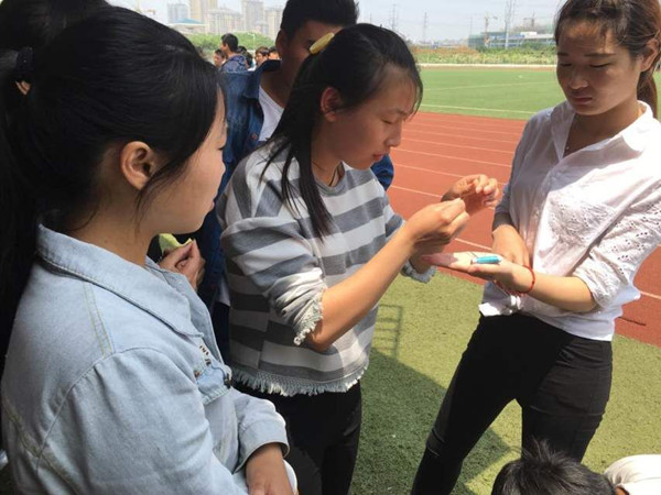 5月11日中午,食品系“三走”趣味运动会之“引针穿线”和“定点投篮”在新操场举行,活动由学生会体育安保部负责组织。