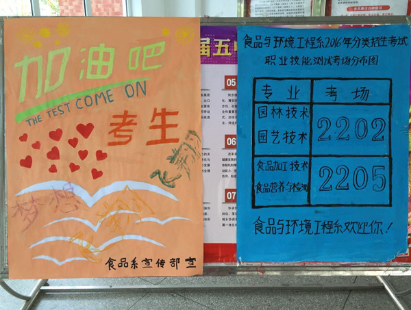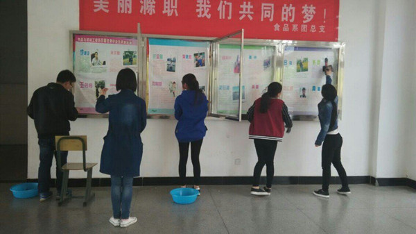 为迎接我院2016年分类招生考试,食品系团总支于4月8日下午指导学生会、各班级认真做好教室卫生打扫、桌椅摆放、橱窗清理、海报出制等工作,为广大考生营造良好的考试环境、展现学院和食品系良好的精神风貌。