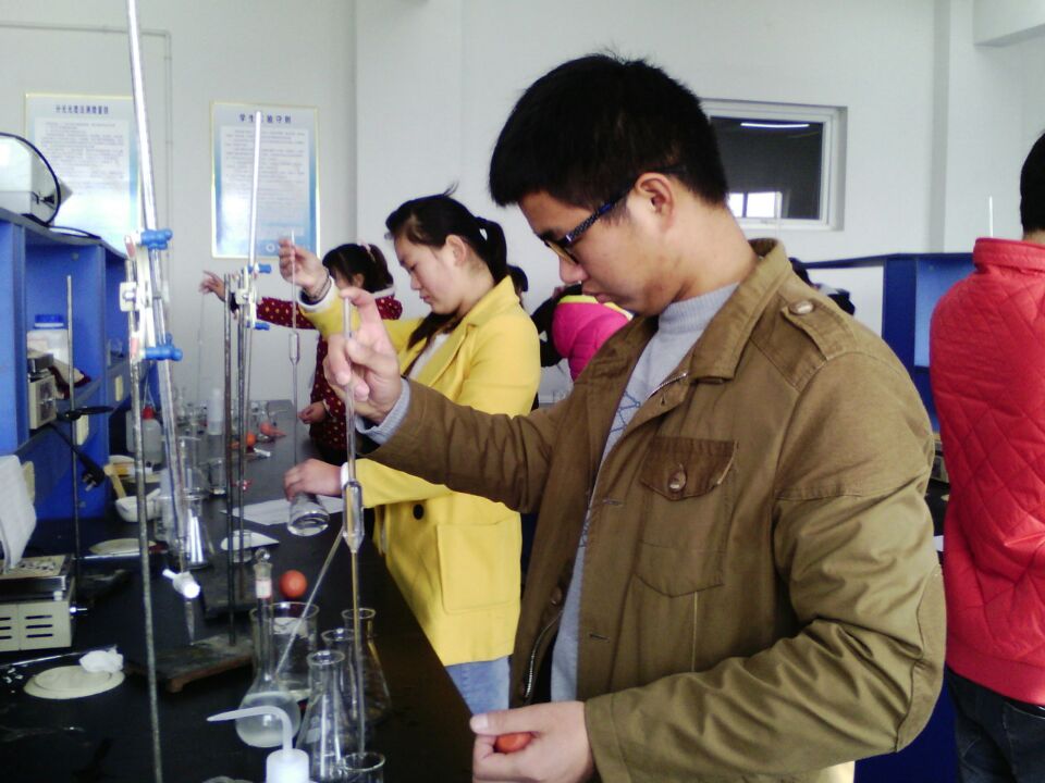 本次比赛面向食品系的所有专业,竞赛题目是各个专业都熟悉“盐酸标准溶液浓度的标定”。此次竞赛的选题好,难度不大,学生报名踊跃;由于实验室场地的制约,经初次的选拔,有20名学生进入最终竞赛。