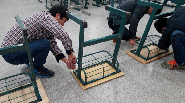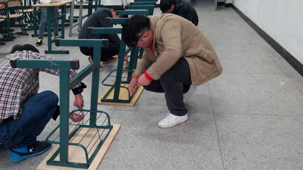 教室课桌椅损坏的现象在各个教室均不同程度存在,给学生上课带来诸多不便。针对这一情况,我系吴剑安老师指导团总支培训了10名志愿者,利用课余时间对桌面掉落、螺丝脱落等问题进行简单的维修。经过志愿者们的努力,一大批课桌椅重新“上岗”。