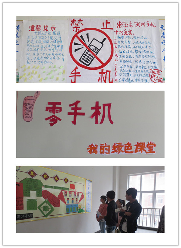 4月11日,各团支部相关主题板报全部出制完成,这表明我系“让手机告别课堂”系列主题教育活动正式启动。下周三开始,我系各班级“手机休息袋”将全面开始启用,各支部的主题教育活动也将相继开展。同时,团总支将利用板报、横幅、微博、微信等媒体进行活动宣传,传播抛开手机、认真学习、健康生活的理念。