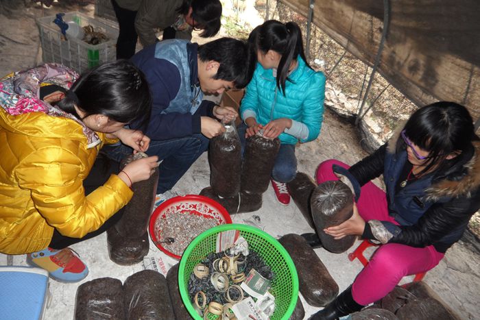 图3 学生在制作平菇母种