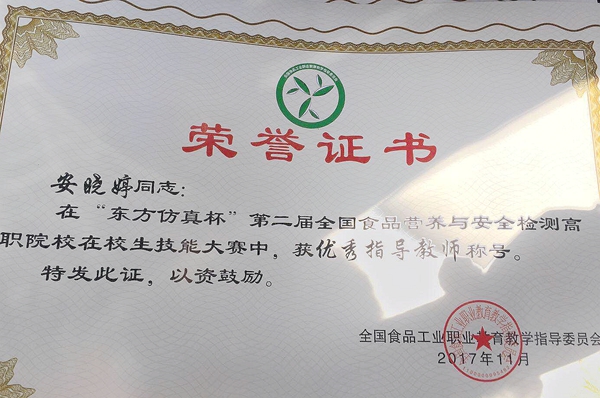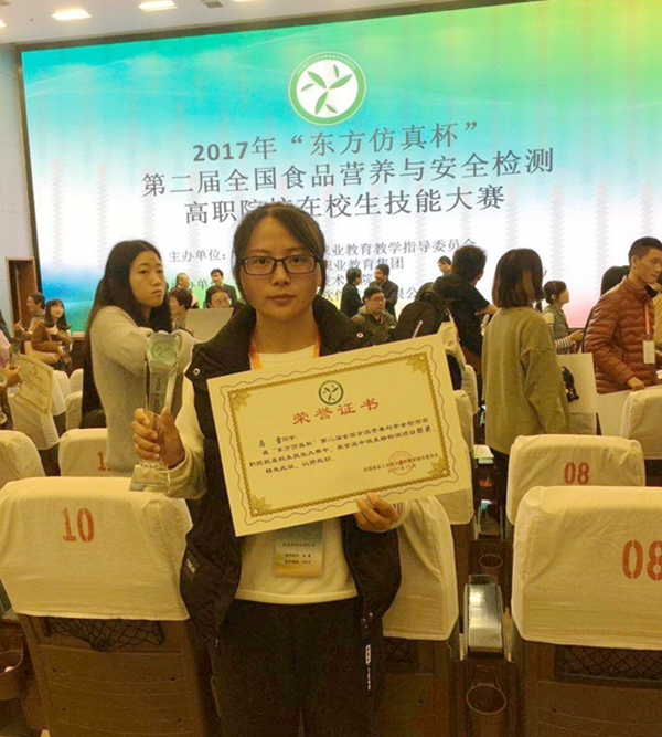 第二届全国食品营养与安全检测高职院校在校生技能大赛于11月7号-9号在江苏农林职业技术学院举办,食品环境与工程系马雪同学荣获食品中微生物检测项目二等奖。