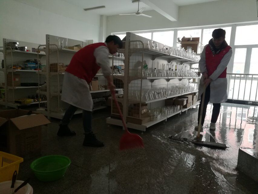 3月11日上午八时,食品与环境工程系致善楼二楼的走廊、部分实验室、教室、办公室内出现大量积水,严重影响正常教学秩序和公共财产安全。我系志愿者在教师的带领下,迅速开展清扫积水工作。