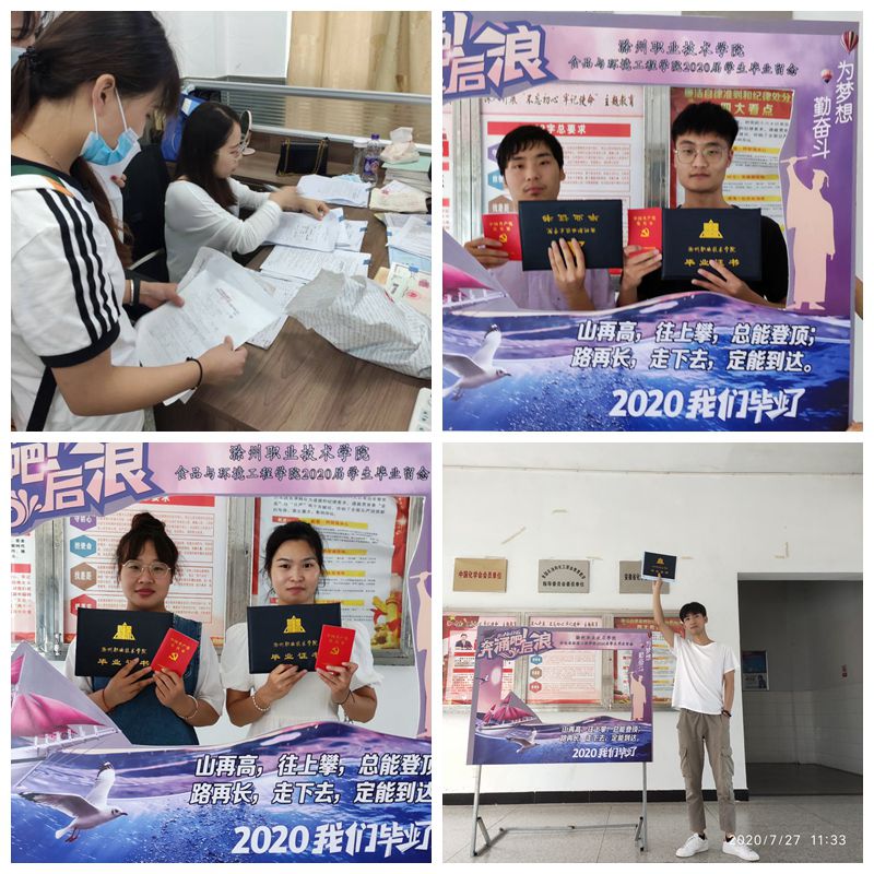 忆往昔,流年似水;展未来,意气风发。为扎实做好2020届毕业生文明离校工作,确保毕业生安全、文明、有序离校。7月27-28日,我院2020届毕业生按照学校疫情防控总体部署和要求,从各地分批有序返校,完成毕业环节各项任务,顺利毕业!