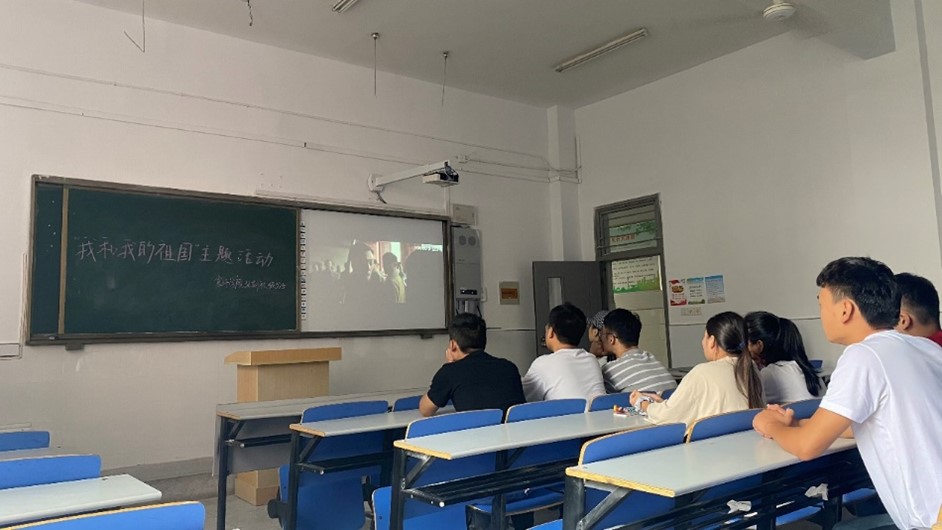 入党积极分子纪雨馨带领大家齐唱歌曲“我和我的祖国”,观看《我和我的祖国》主题记录短片,这部电影重现了祖国经历的七个永恒的瞬间,讲述了普通百姓与国家息息相关的故事,见证了祖国从成立到辉煌的历程。生动的视频让同学们更加感受到祖国的强大。同学们纷纷发言,为祖国的繁荣昌盛感到骄傲,励志要努力学习,加强实践,为祖国奉献自己的青春力量。