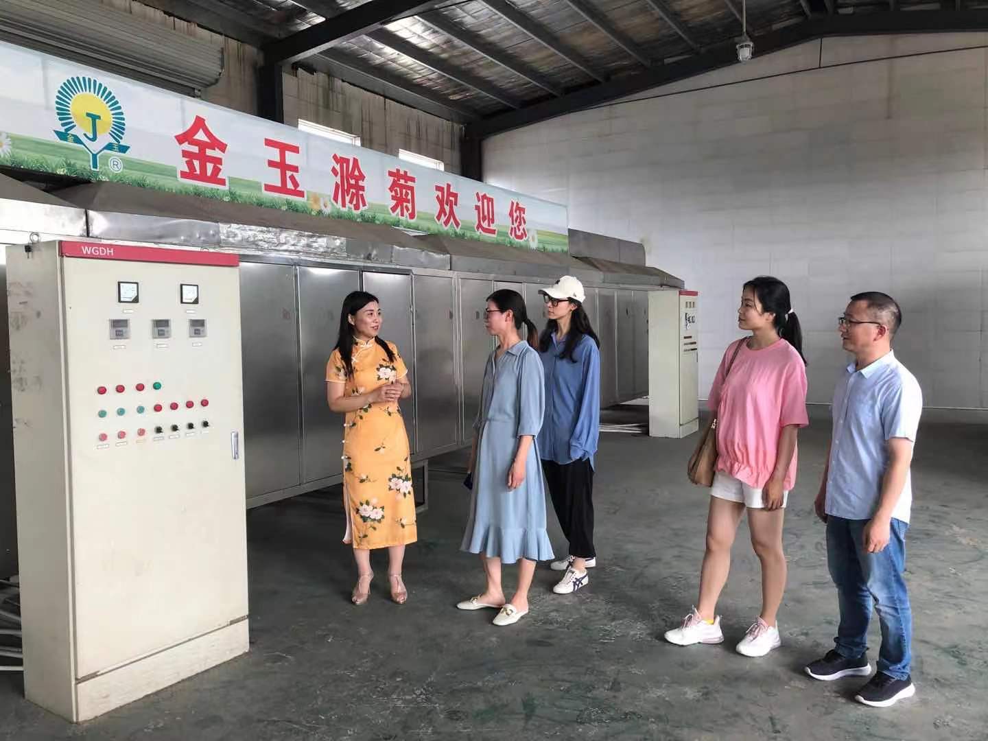 老师们深入到田间地头,针对滁菊的夏季管理、病虫害防治等问题,与滁菊研究工作人员进行了深入交流,指导企业更好地进行滁菊的无公害生产,提升滁菊生产的品质和质量。老师们提出的覆地膜生产防除杂草及减少病虫害、结合滁菊摘心减轻天牛危害等的技术措施,受到企业的一致肯定与赞扬,切实将教师的专业技术特长服务企业技术进步。