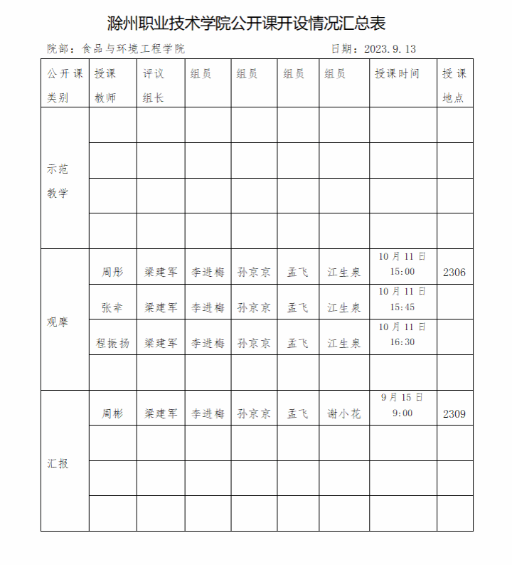 公开课开课汇总