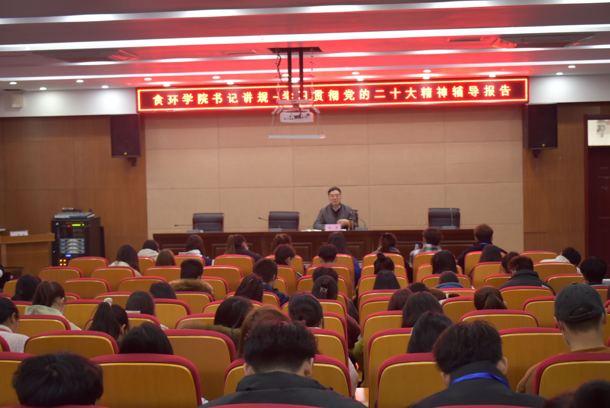 11月29日中午,食环学院团总支学生会于南阶205召开全体大会,党总支书记陈震为全体学干作了题为“学习贯彻党的二十大精神,加强学生干部队伍建设,提升学干工作的能力和水平”的专题辅导报告。团总支书记李瑞瑞以及团总支学生会全体成员、22级班委参加报告会。