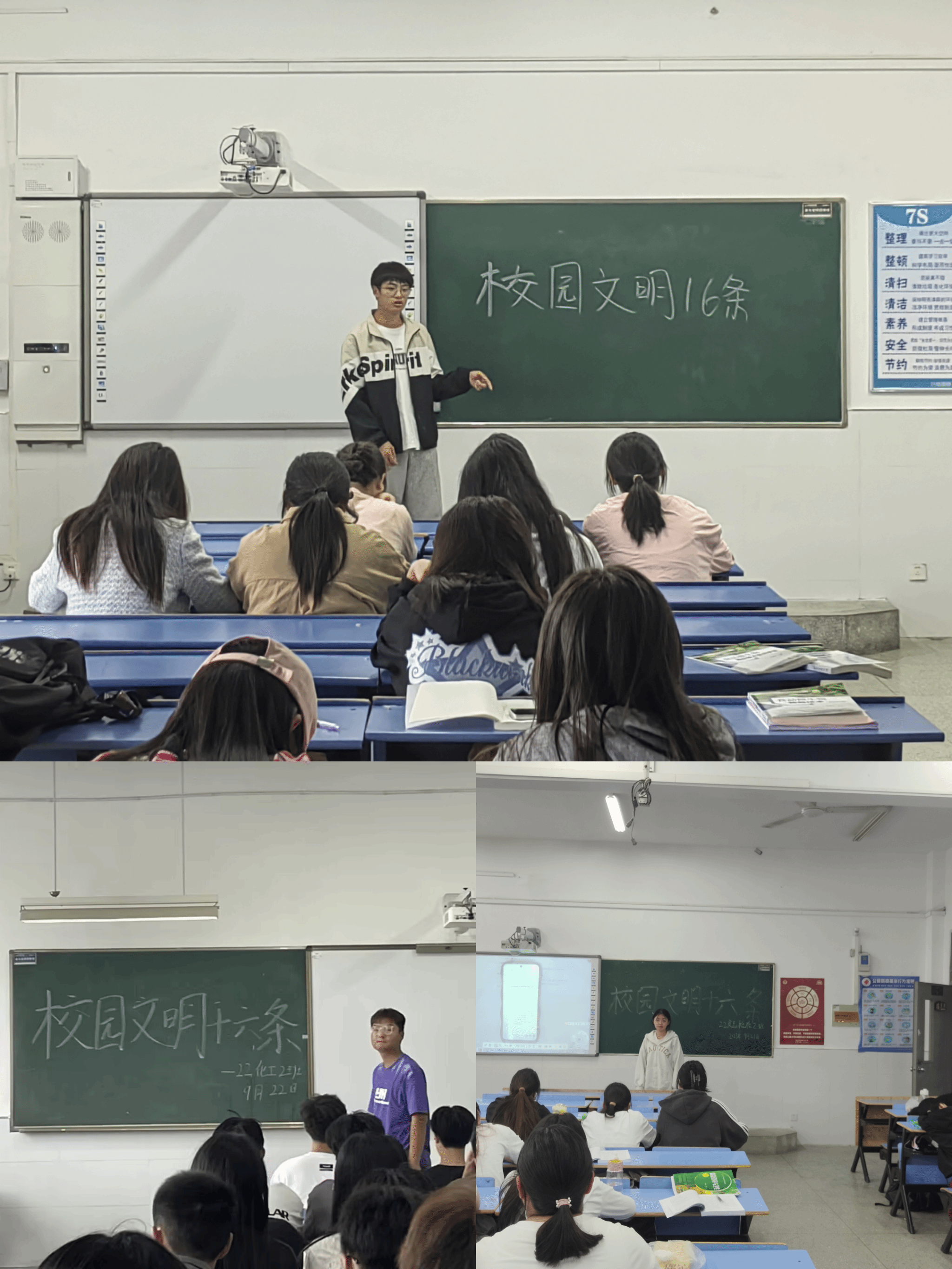 为创建优良学风,激发同学们学习的主动性和创造性,营造良好的学习氛围,食环学院开展“校园文明行为16条”与优良学风督查督导工作。