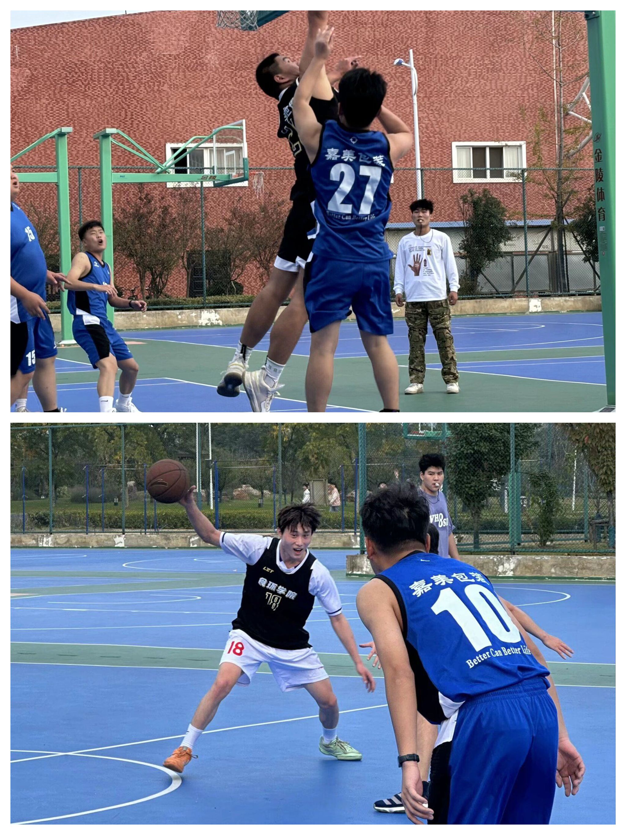 11月13日,为促进大学生身心健康,激发校企合作深化交流,一场精彩绝伦的篮球友谊赛在热闹非凡的氛围中于第三篮球场四号场地拉开帷幕,对战双方是嘉美食品包装有限公司队和食环学院学生会成员队。