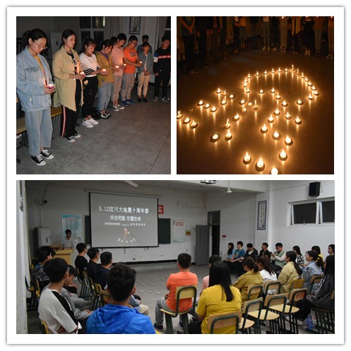 活动由一段汶川地震主题视频开启,十几分钟的视频将同学们迅速带入到十年前那场惨烈的大地震中。地震的无情与残酷让同学们红了眼眶,但中华儿女万众一心、众志成城的抗震精神更让大家震撼;观看完视频后,同学们点起了蜡烛,为地震中的死难者祈福、默哀。