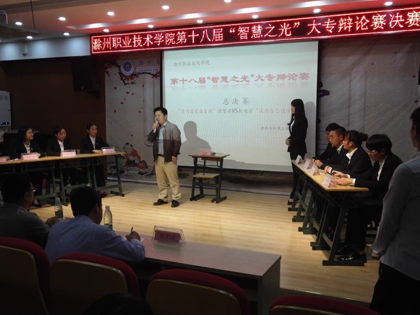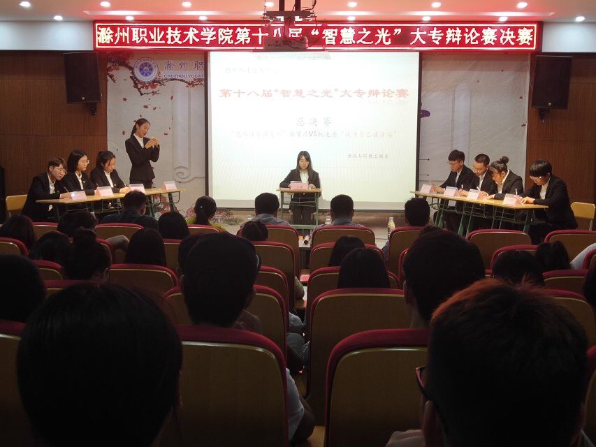 5月23日晚7点,由院团委主办,思政部、基础部、食品与环境工程系联合承办的awc777万象城娱乐官网第十八届“智慧之光”大专辩论赛决赛在南阶203教室隆重开赛。出席本次比赛的评委有思政部张家莉老师、教务处唐义武老师、办公室熊顺喜老师、招就处徐云龙老师、学生处耿学刚老师。