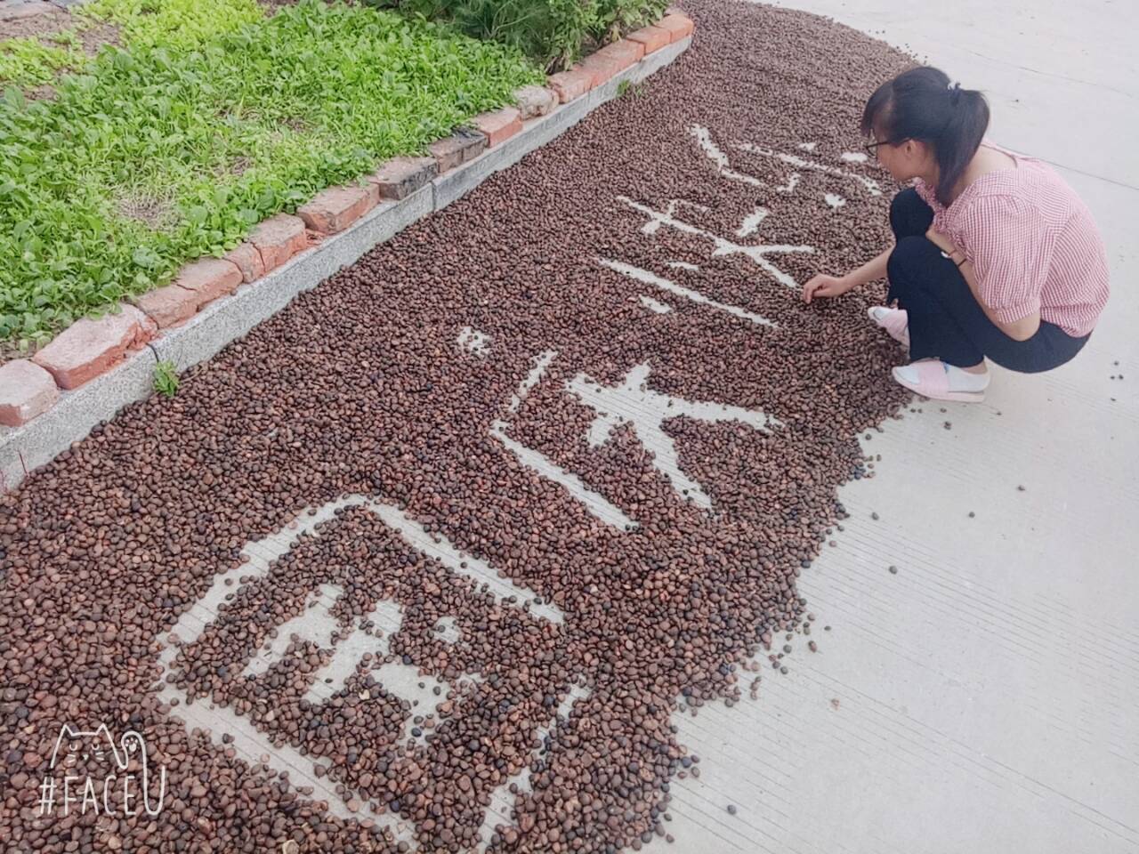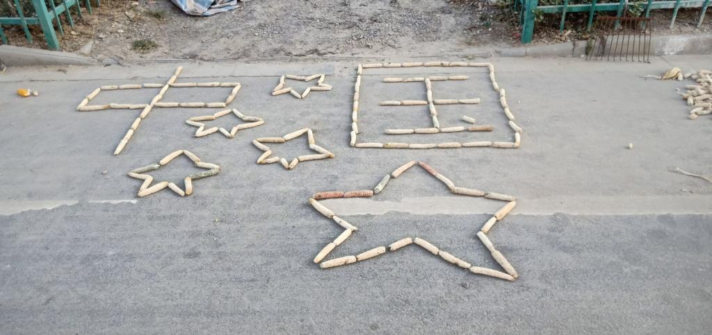 国庆期间,节日的喜庆氛围感染着每一个人,大街小巷都是迎风飘扬的五星红旗,而越来越多的年轻人开始采用更新奇创意的方式为祖国庆生。食环系的学生干部们在假期中,利用家乡刚收获的玉米、豆子等摆出国旗和字样,分享收获的喜悦,表达对祖国母亲的祝福。