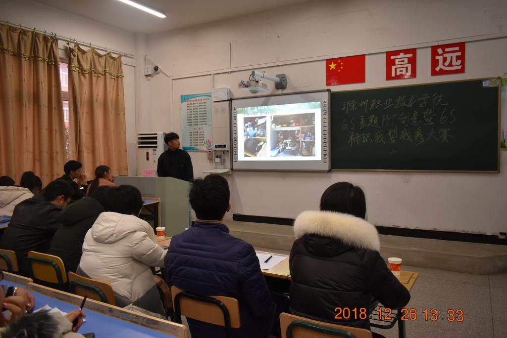 比赛自12月初启动后,经过宣传和发动,来自全校各系的14支队伍、近50名学生参加了此次比赛。“6S管理虽然最初来源于企业管理,但对职业院校来说有很多相通之处,将6S管理引入教育和管理过程中,不仅能够为我们创造良好的生活和学习环境,更能够帮助我们培养良好的职业素质,为未来的职业发展打好基础。”比赛中,学生们如是说。