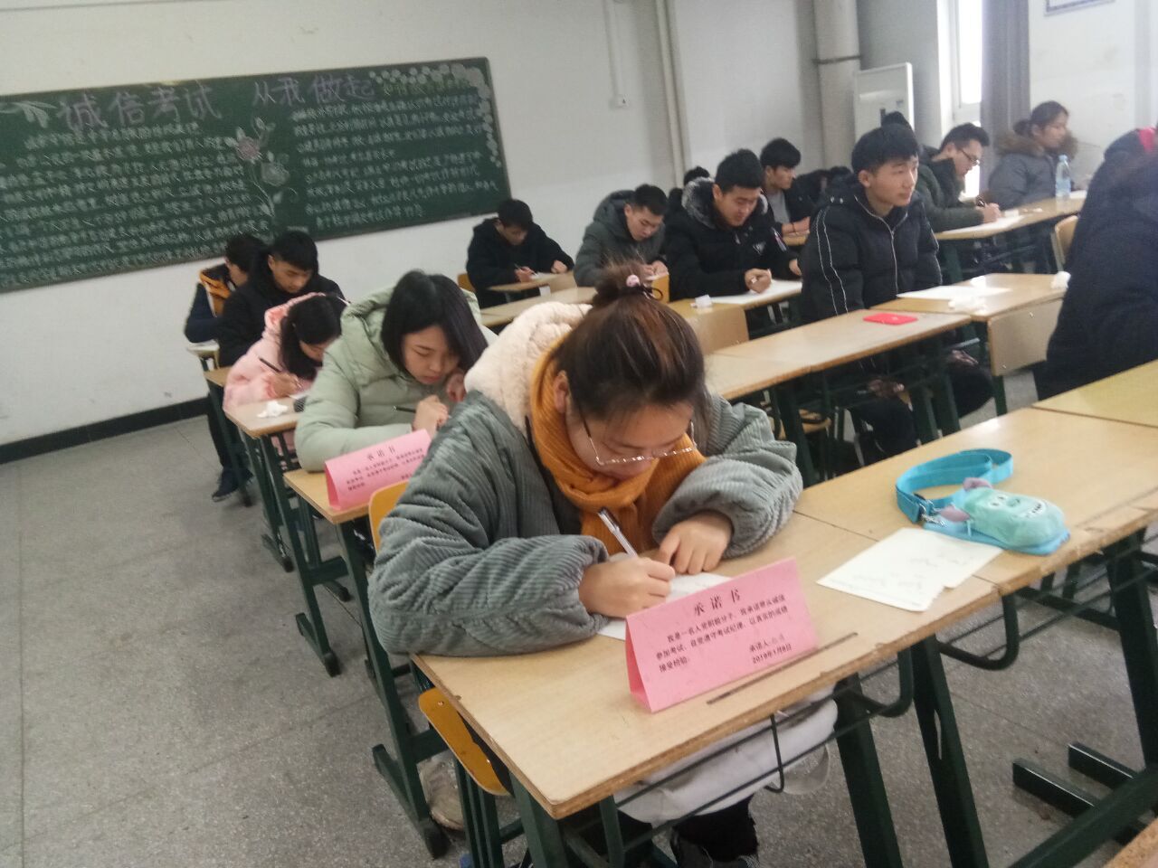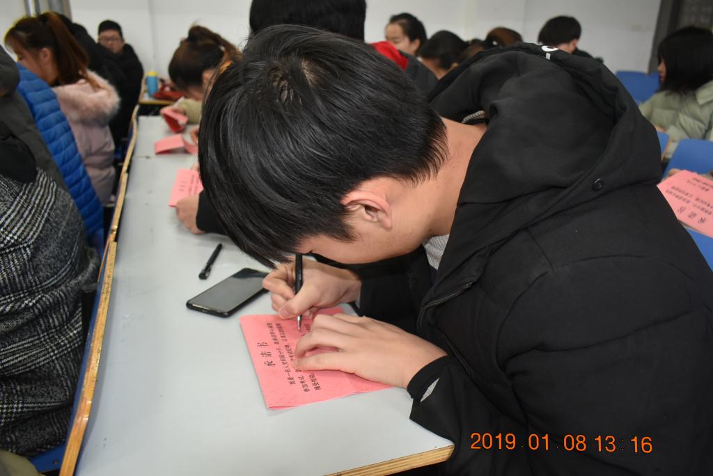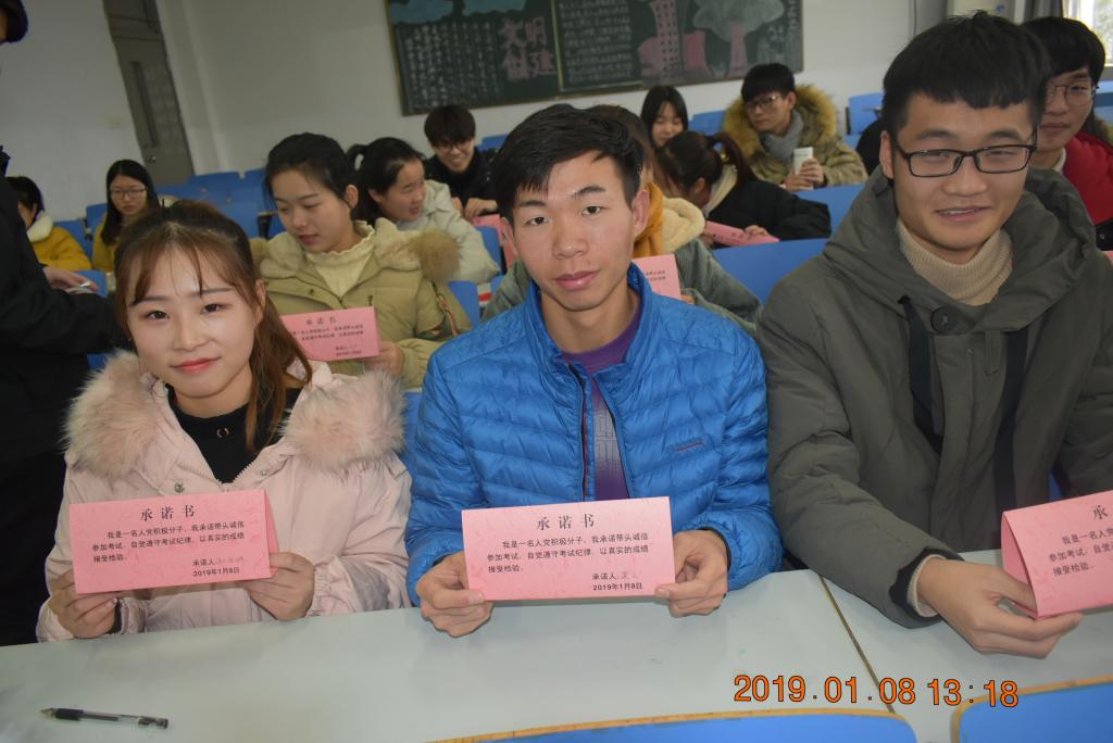 活动现场,党支部书记作诚信考试动员,学生入党积极分子在《诚信考试承诺书》上郑重签名,承诺积极复习备考,坚决杜绝考试作弊,树立考场正气。