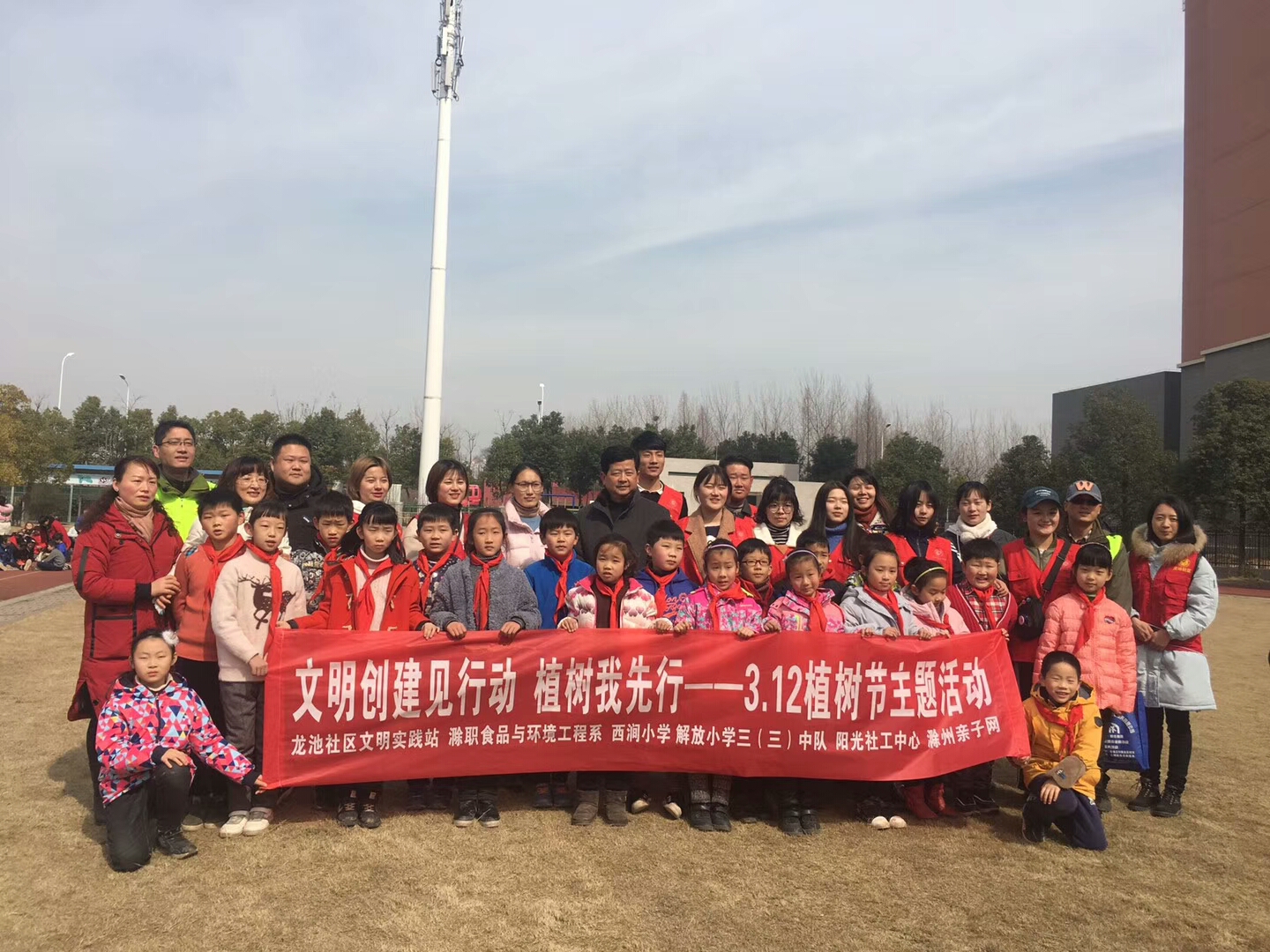3月8日上午,食环系志愿者在老师的带领下来到西涧小学,与龙池社区的志愿者、龙池社区“爱心学堂”学员及周边小学的少先队员们共同参加此次“学雷锋”义务植树活动。活动现场,大小志愿者们分工合作,干劲十足:搬运树苗、挖坑扶苗、填土浇水,分工明确、配合默契,繁忙而有序,活泼而热烈,圆满完成了植树任务。植树结束后,志愿者还组织孩子们开展了素质拓展训练。