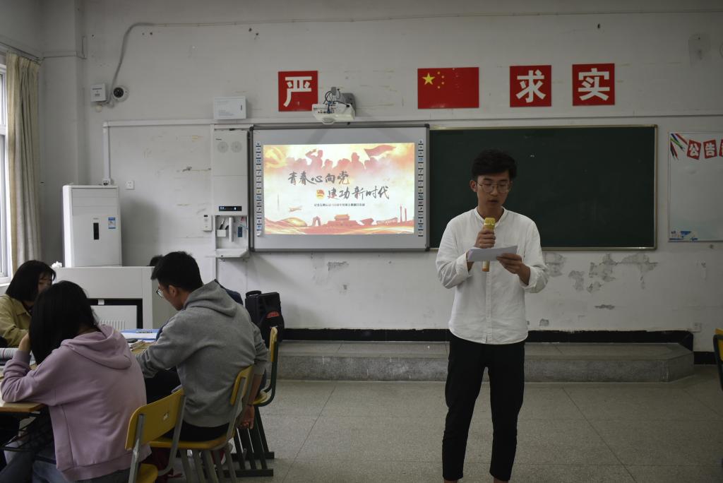 4月25日中午,17食品营养团支部召开主题团日,食环系团总支组织团干进行现场观摩。活动由该班班长陈晨同学主持,他首先播放了五四运动相关影片;随后,团员代表赵守语同学进行五四主题演讲,团支部书记洪欣同学讲解五四经典图片资料,向支部团员发出继承弘扬五四精神、争做时代新人的号召。班级团员分五组开展了五四精神学习和讨论,并对学习结果进行展示、汇报。最后,团支部带领全体团员重温入团誓词、找寻入团初心。