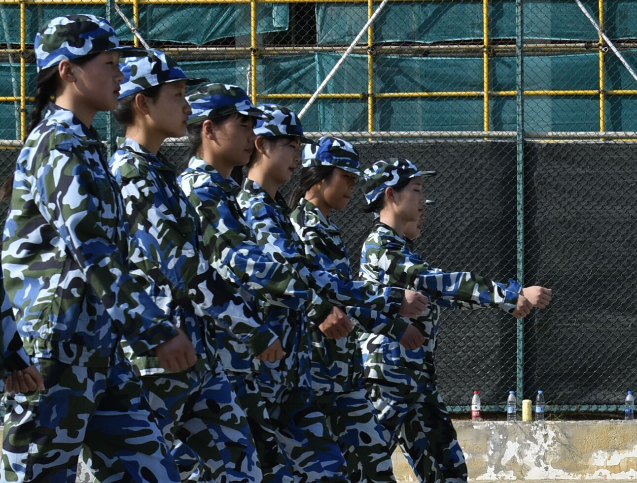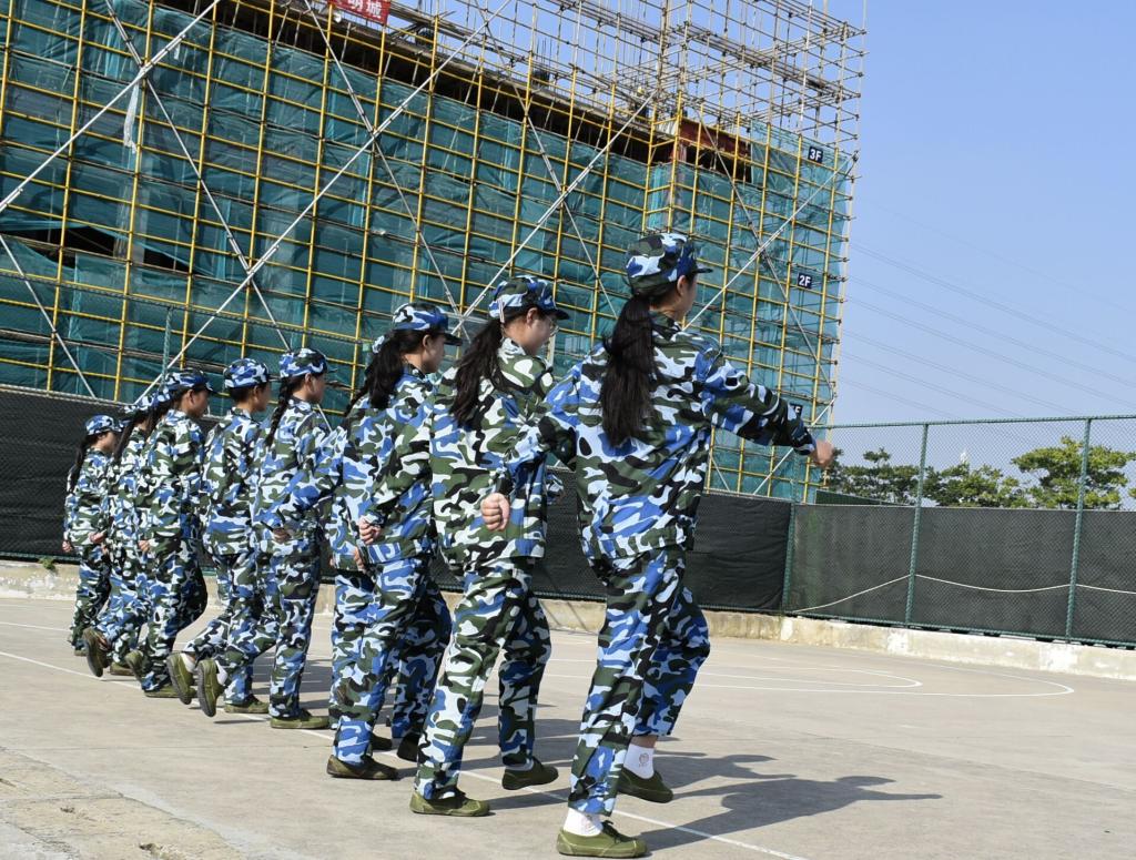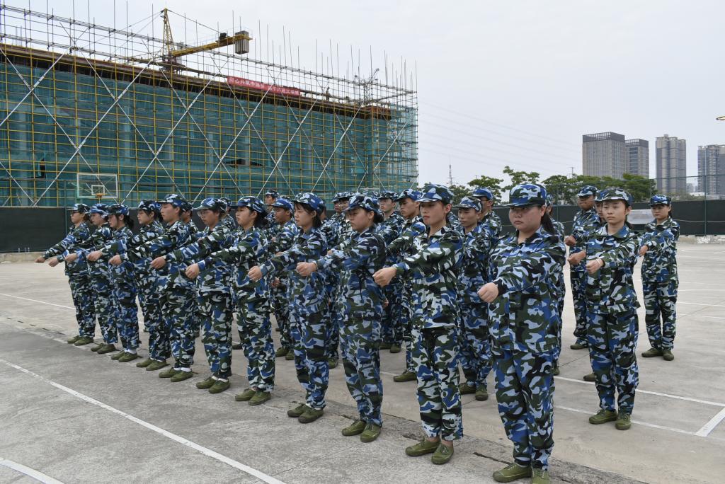 秋天的天气异常干燥、头顶的骄阳依旧热情如火。同学们却激情不减,抬头、挺胸、摆臂、踢腿——女生们英姿飒爽、男生们虎虎生威,他们着装整齐,喊着响亮的口号,听着教官的口令,一遍一遍,反复练习,一个个身形逐渐挺拔、一列列队伍逐渐整齐。