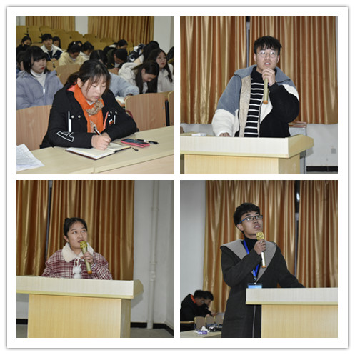 会议开始,团总支学生会各部门部长依次上台进行PPT汇报,从部门成员、部门职责、学期活动总结、存在的不足以及未来展望等方面对本部门一学期的工作情况进行总结汇报。李瑞瑞老师对各部门工作和汇报分别做出点评,指出了各部门现阶段存在的问题以及下学期需要改进的地方,对团总支学生会一学期来所做工作给予充分肯定,同时勉励团学干们继续发挥模范带头作用,以饱满的热情投入到下学期的工作。会议最后,主席段聪聪宣读了本学期各部门的优秀团学干名单,在对团学干鼓励的同时也指出近期工作中存在的问题和不足,希望在下学期能更好开展工作、举办活动。