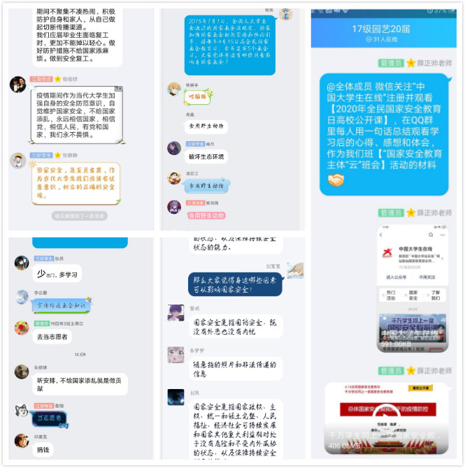 全院20个班级600多名学生在辅导员的组织和带领下,以“国家安全”为主题,通过观看视频、国家安全相关法律法规学习、线上讨论等形式,开了一次主题“云”班会。