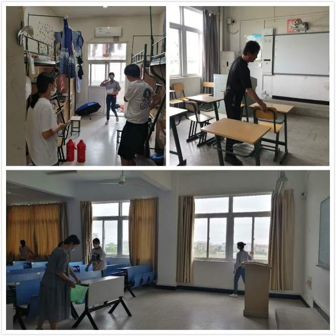 此次检查由党总支副书记带队,全体专职、部分兼职辅导员参加。检查人员首先依次检查了教学楼各教室的卫生和安全情况,并于结束后锁好门窗。随后,检查人员来到学生寝室,重点查看学生寝室6S创建、离校后的寝室卫生、断水断电情况,同时对发现的安全隐患进行记录。检查中,个别学生还未离校,辅导员叮嘱学生离校时把寝室打扫干净,做到断水断电,注意回家途中的出行安全,戴好口罩做好个人防护。