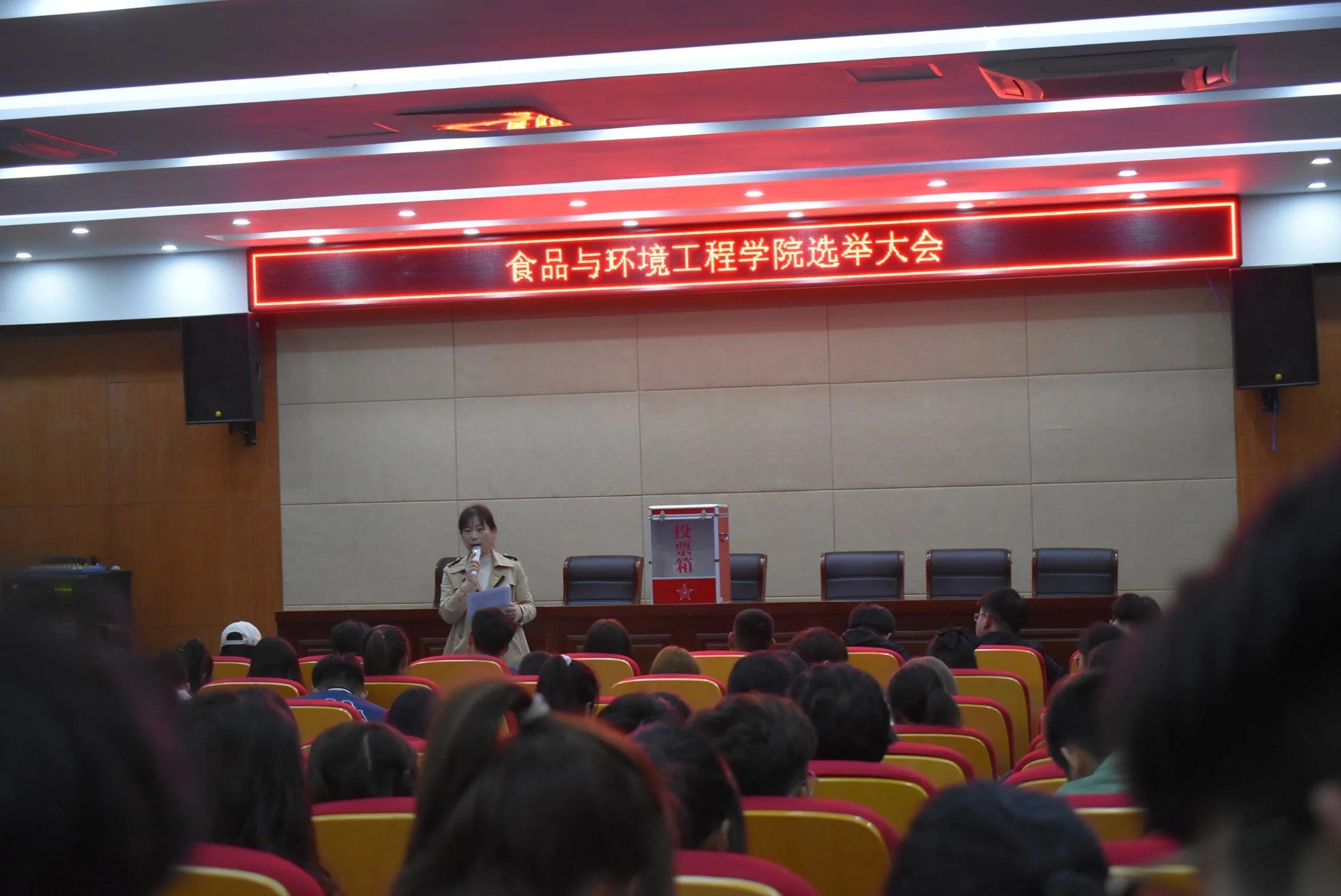 11月18日晚,食品与环境工程学院在南阶205召开awc777万象城娱乐官网第二次学代会学生代表选举大会。我院团总支指导老师李瑞瑞和100名各班学生代表及12名代表候选人参加了此次大会。大会由院学生会副主席纪雨馨主持。