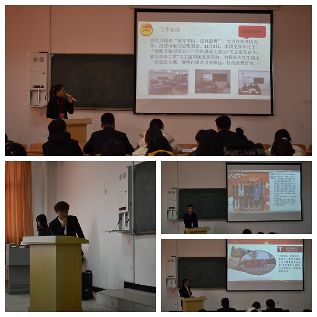 会议开始,团总支副书记王猛、学生会主席王得志分别向大会做工作述职,各部部长以PPT形式结合部门工作特色、取得的成绩、存在的问题及努力方向等方面进行了述职汇报。他们纷纷谈到,通过团学活动的开展,既锻炼了个人工作能力,又培养了团队合作精神,并表示在今后的学习和工作中将会继续努力,认真完成各项工作。